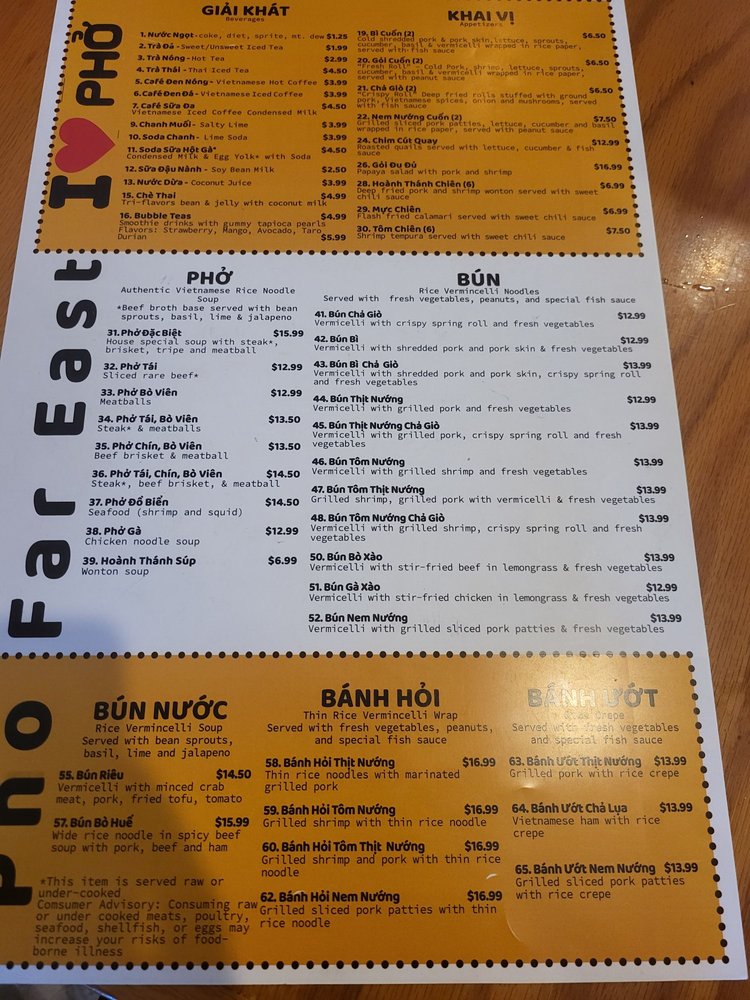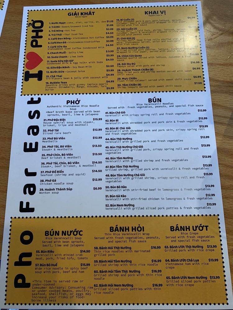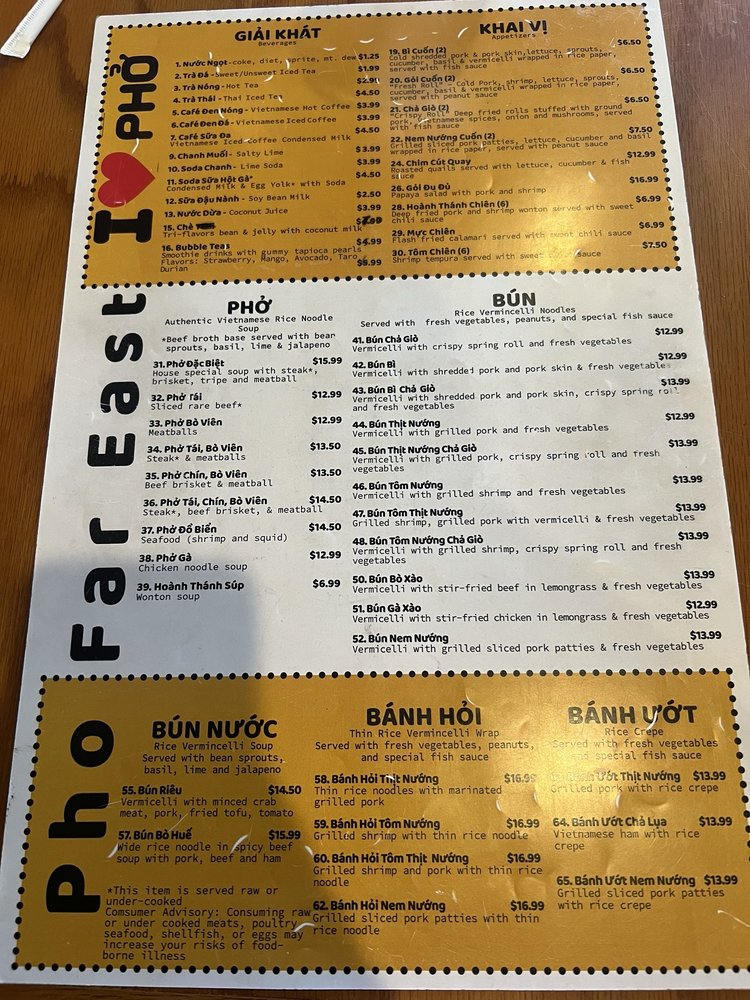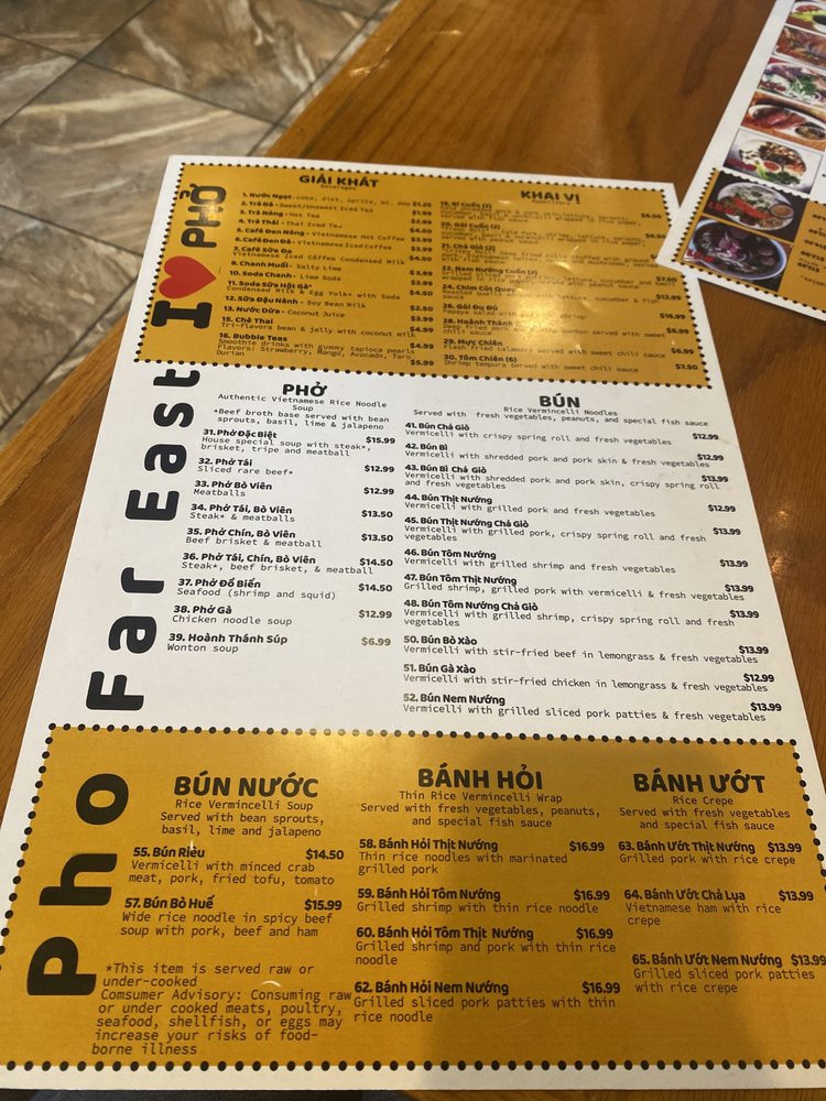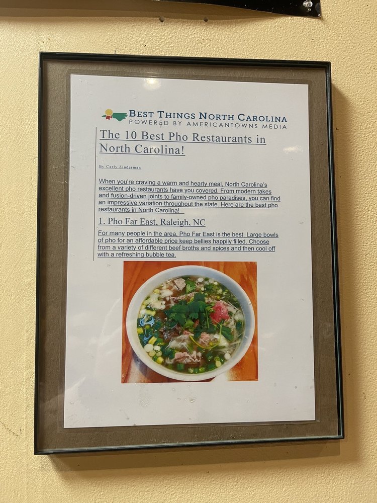 Pho Far East, located in Raleigh, NC, is a Vietnamese restaurant that offers a variety of authentic dishes. With options for delivery, takeout, and reservations, this restaurant caters to a wide range of customers. The menu includes vegan and vegetarian options, ensuring there is something for everyone. Customers have raved about the flavorful pho, generous portion sizes, and friendly service. The broth is praised for its depth of flavor, while the meats are of high quality. The restaurant is known for its consistency in delivering delicious meals and creating a welcoming atmosphere. If you're in the area and craving Vietnamese cuisine, Pho Far East is a must-try spot that will leave you coming back for more.